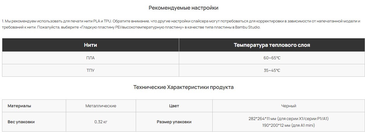 Размер упаковки: 282*264*11 мм. Совместимость с: A1, P1P, P1S, X1C, X1E. Вес: 0.32 кг. Артикул товара: FAP016-N.