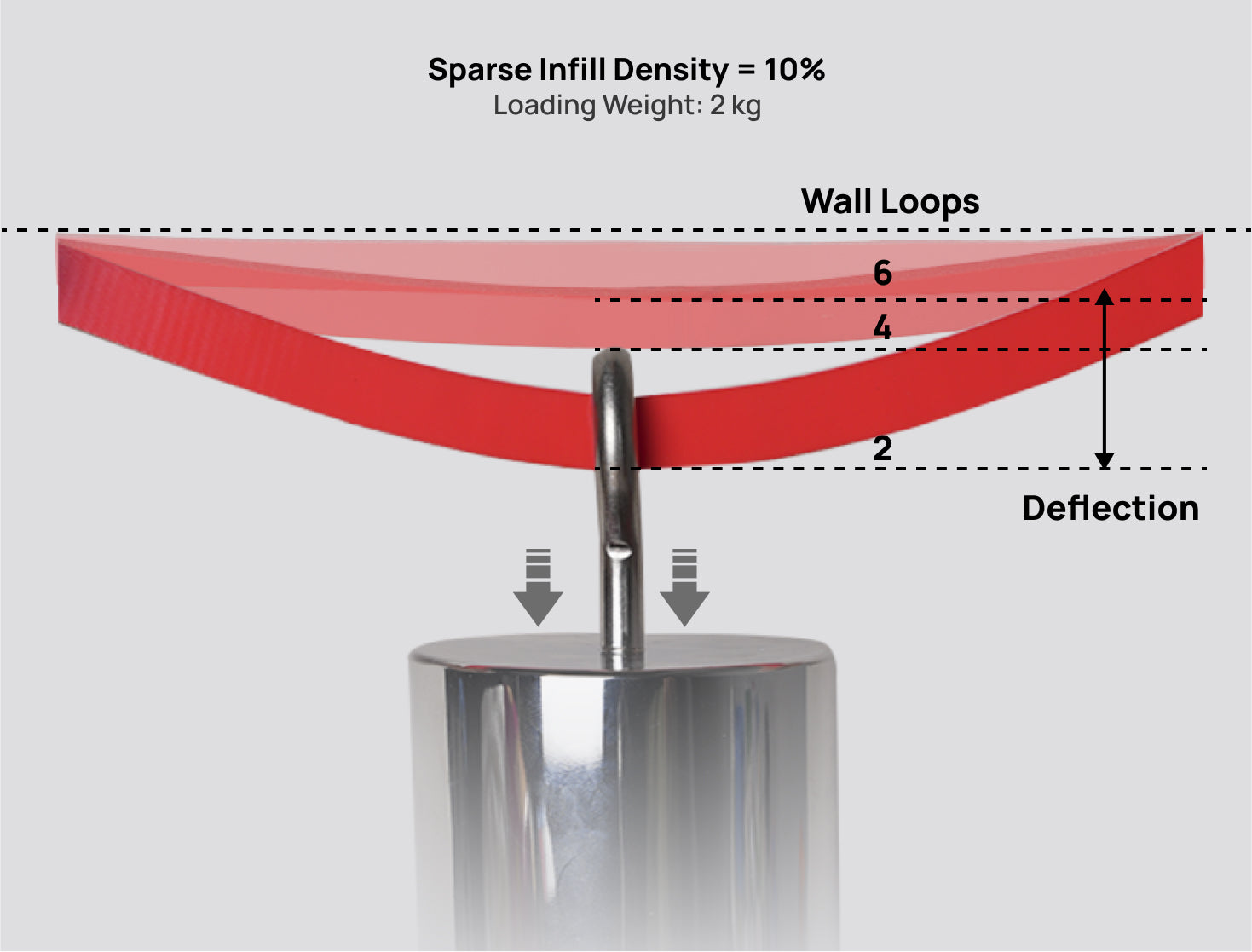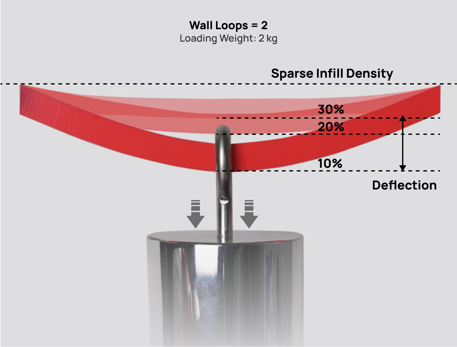 Эластичность отпечатков TPU связана с настройкой Wall Loops и Sparse Infill Density . Чем выше wall loops или плотность разреженного заполнения, тем ниже эластичность, и наоборот.